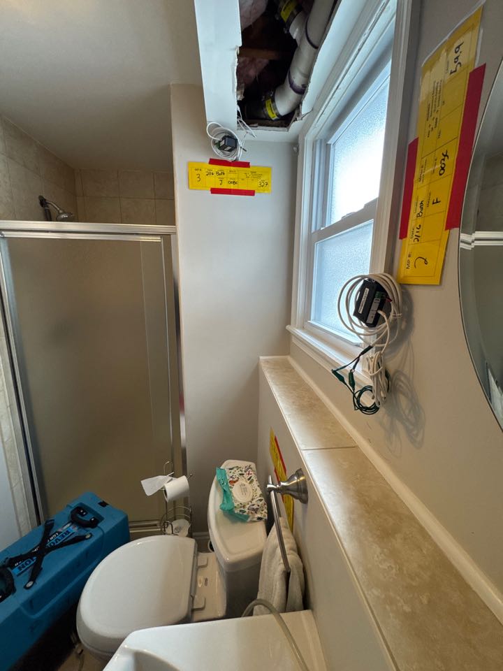 Manalapan Nj. Homeowner called us when he noticed water coming from around the window in his downstairs bathroom. After a quick inspection done by First Class leak detection, it was found to be a leaking drain pipe in his ceiling header spilling water down the wall around the window. Allstates restoration went to work and started the water damage remediation process in this bathroom to make it clean and dry. #water_damage #leak_detection #Remediation #leak #bathroom #Restoration